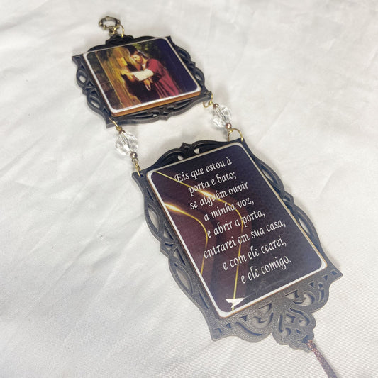 ADORNO DUPLO QUADRADO JESUS BATE NA PORTA (1 UNIDADE)