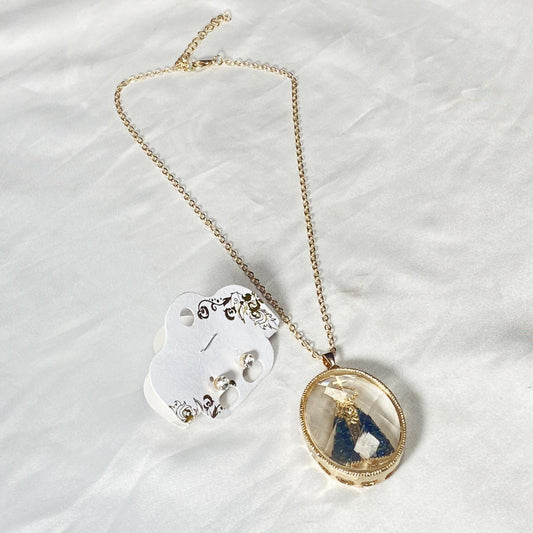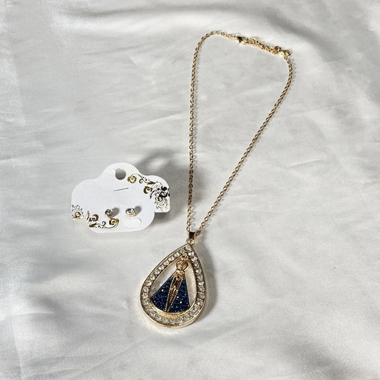CORRENTE DOURADA GOTA COM BRINCO NOSSA SENHORA APARECIDA MADREPÉROLA (1 UNIDADE)