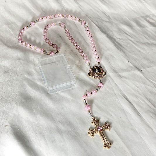 TERÇO DE NOIVA PÉROLA ROSA NOSSA SENHORA APARECIDA 08MM (1 UNIDADE)
