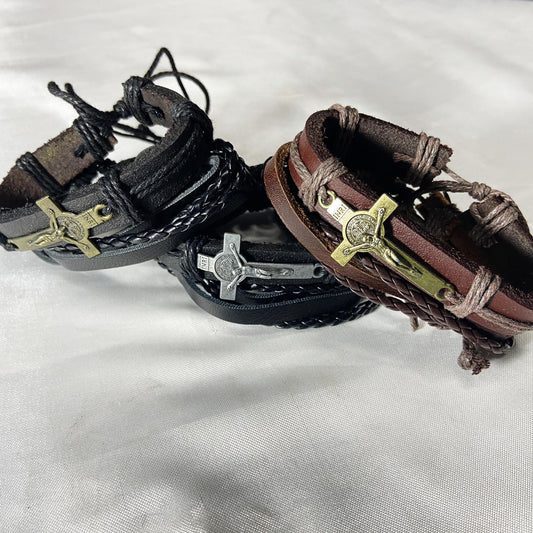 PULSEIRA COURO CRUCIFIXO CORES SORTIDAS (3 UNIDADES)