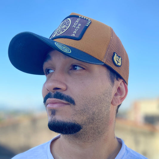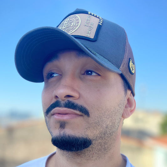 BONÉ MEDALHA SÃO BENTO CARAMELO E PRETO BORDADO (1 UNIDADES)