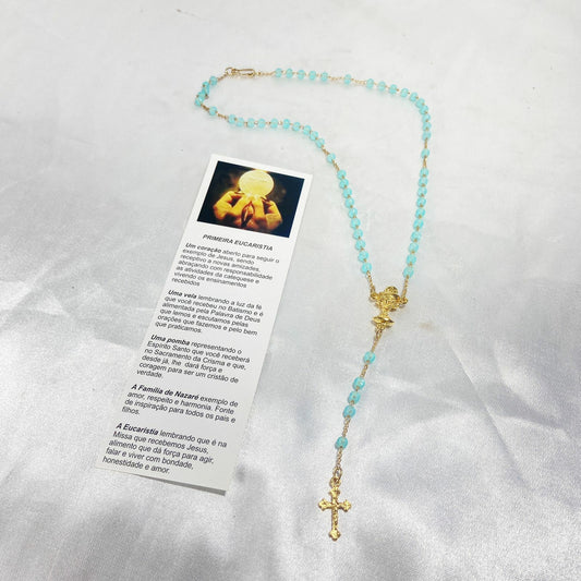 TERÇO CRISTAL AZUL COM CÁLICE DOURADO 4MM (1 UNIDADE)