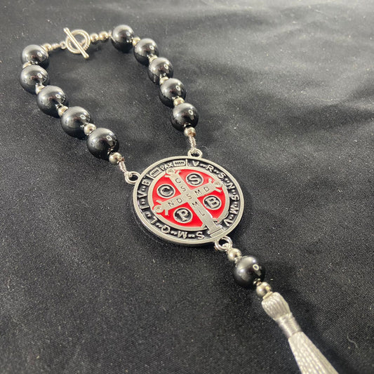 DEZENA PARA CARRO HEMATITA MEDALHA SÃO BENTO 12 MM (1 UNIDADE)