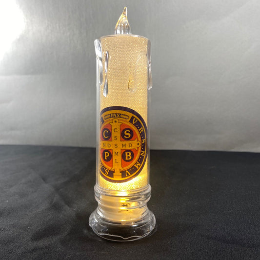 VELA ELETRÔNICA TRANSPARENTE MEDALHA SAO BENTO 15CM (1 UNIDADE)