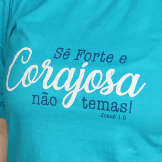 CAMISETA AZUL SÊ FORTE E CORAJOSA MANGA BUFANTE TAMANHO M (1 UNIDADE)