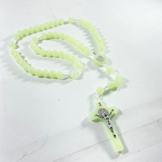 TERÇO ROSAS MEDALHA DE SÃO BENTO FLUORESCENTE 8MM (6 UNIDADES)