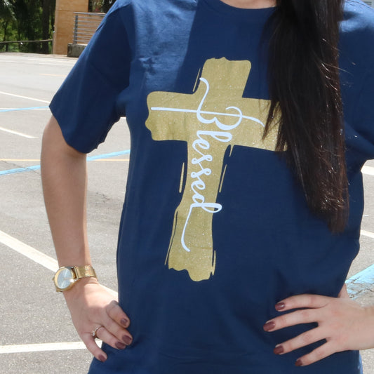 CAMISETA AZUL BLESSED TAMANHO M (1 UNIDADE)
