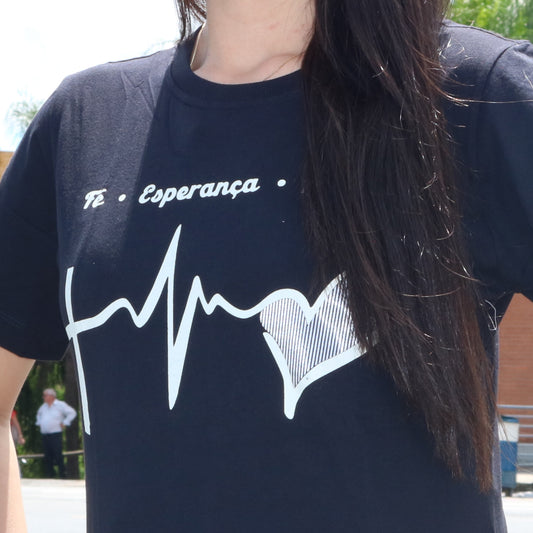 CAMISETA PRETA FÉ, ESPERANÇA E AMOR TAMANHO P (1 UNIDADE)