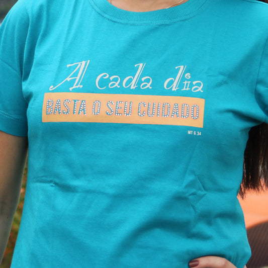 CAMISETA FEMININA AZUL - A CADA DIA BASTA O SEU CUIDADO TAMANHO M (1 UNIDADE)