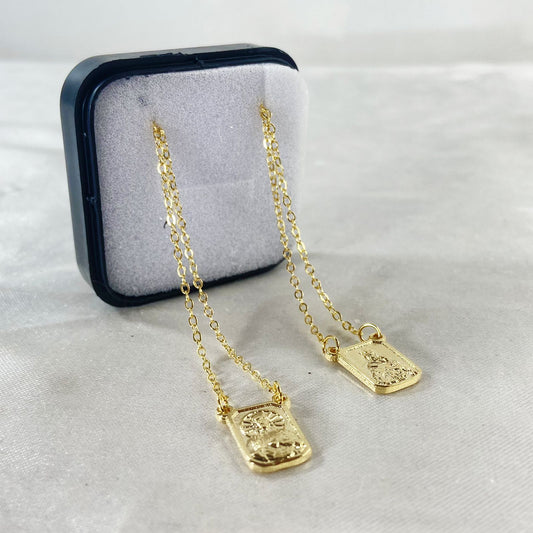 ESCAPULÁRIO DOURADO PLACA PRATEADA SAGRADO CORAÇÃO DE JESUS E NOSSA SENHORA DO CARMO (3 UNIDADES)