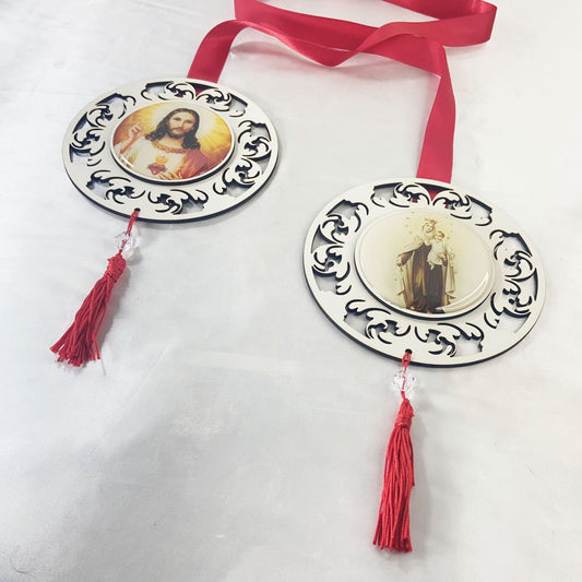 ESCAPULÁRIO DE PORTA BRANCO NOSSA SENHORA DO CARMO E SAGRADO CORAÇÃO DE JESUS (1 UNIDADE)
