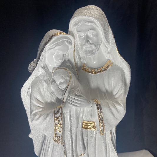 IMAGEM DE GESSO SAGRADA FAMÍLIA BRANCA E DOURADA 43CM (1 UNIDADE)