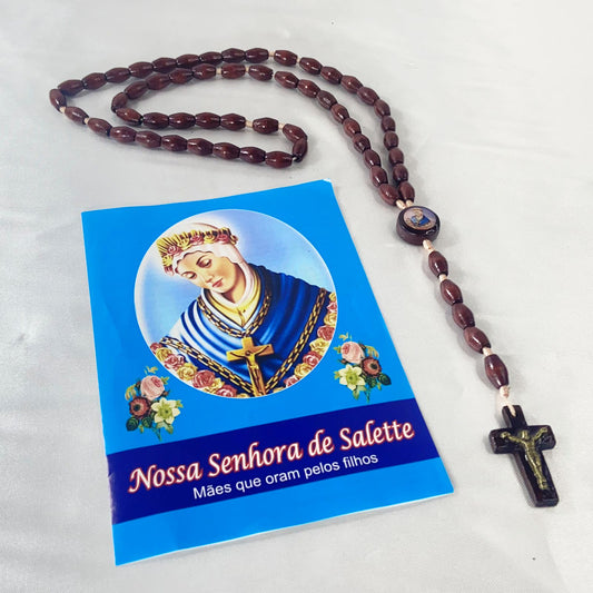 TERÇO DE MADEIRA NOSSA SENHORA DE SALETTE MÃES QUE ORAM PELOS FILHOS (3 UNIDADES)