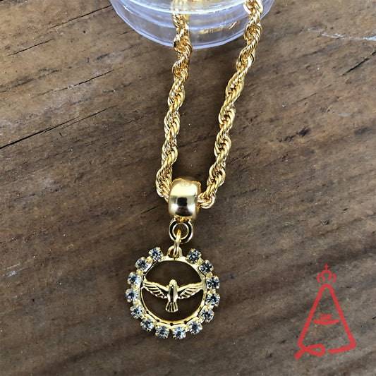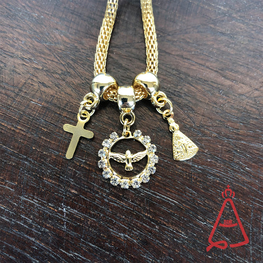 PULSEIRA DOURADA PINGENTE ÚNICO REDONDO DIVINO ESPÍRITO SANTO COM STRASS (6 UNIDADES)
