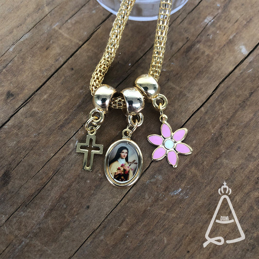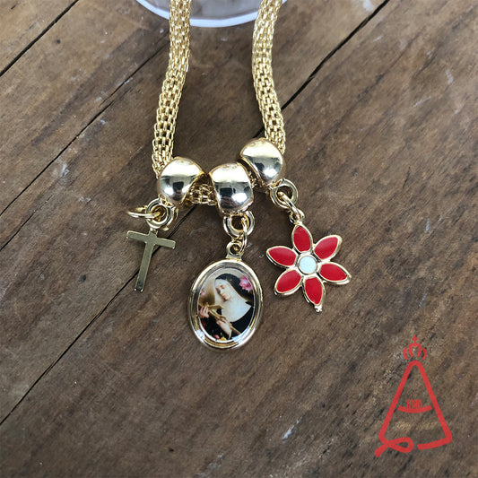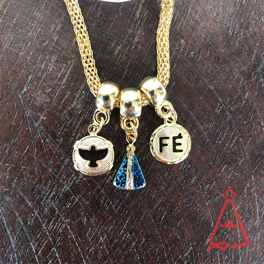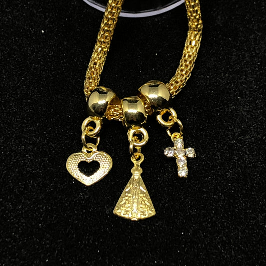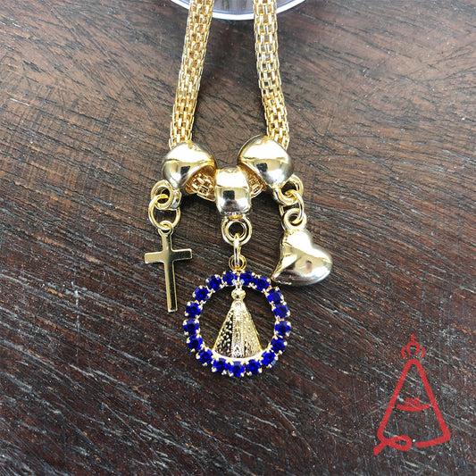 PULSEIRA DOURADA NOSSA SENHORA APARECIDA E FÉ REDONDO (6 UNIDADES)