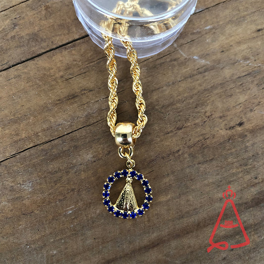 PULSEIRA DOURADA PINGENTE ÚNICO REDONDO NOSSA SENHORA APARECIDA COM STRASS (6 UNIDADES)