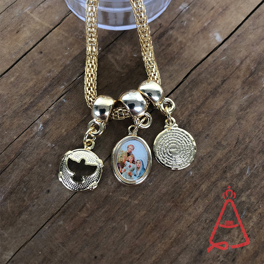 PULSEIRA DOURADA PINGENTE ÚNICO CORAÇÃO DIVINO ESPÍRITO SANTO (6 UNIDADES)