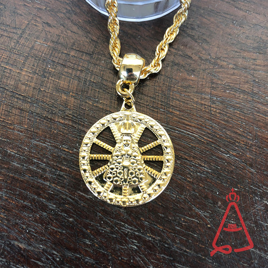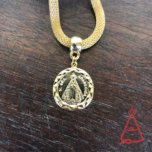 PULSEIRA DOURADA PINGENTE ÚNICO REDONDA NOSSA SENHORA APARECIDA RAIADO (6 UNIDADES)