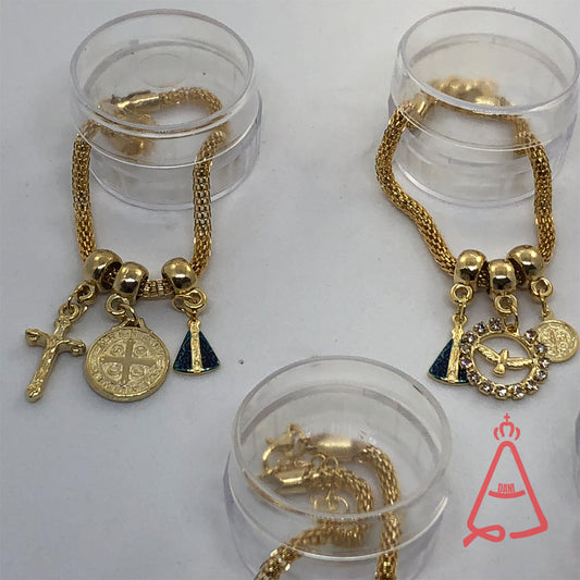 PULSEIRA DOURADA PINGENTE ÚNICO SANTOS SORTIDOS (6 UNIDADES)