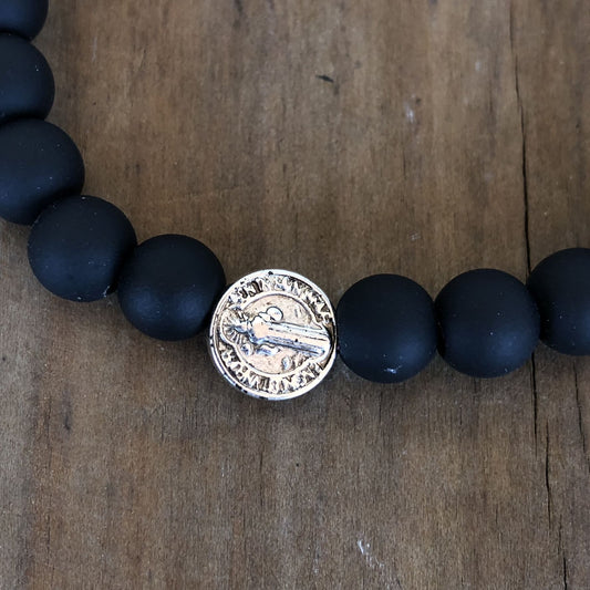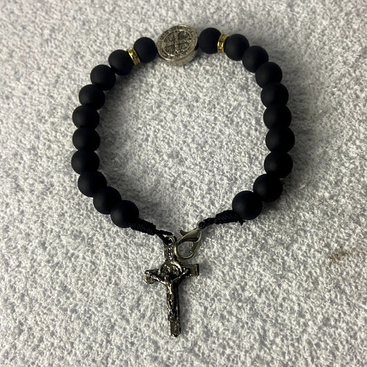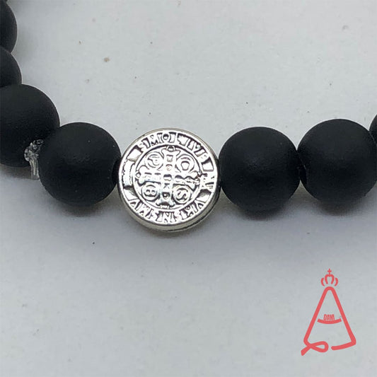 PULSEIRA EMBORRACHADA MEDALHA SÃO BENTO PRETO FOSCO (12 UNIDADES)