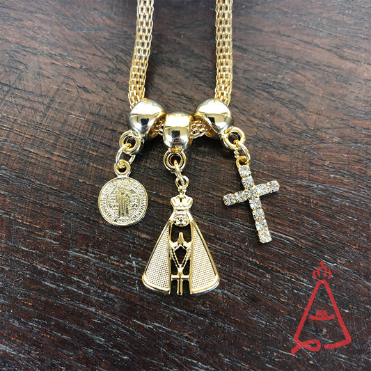 PULSEIRA DOURADA CORPINHO MINI NOSSA SENHORA APARECIDA COM STRASS (6 UNIDADES)