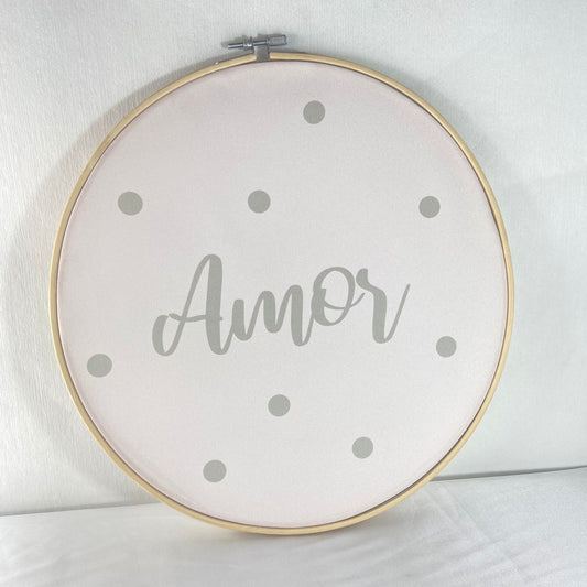 QUADRO DE TECIDO COM MOLDURA DE BAMBU AMOR (1 UNIDADE)