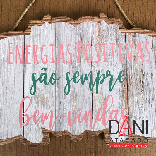 PLACA DECORATIVA FRASES - ENERGIAS POSITIVAS SÃO SEMPRE BEM-VINDAS 20X34 (1 UNIDADE)