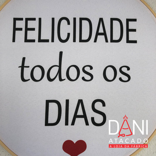 QUADRO DE TECIDO COM MOLDURA DE BAMBU FELICIDADE TODOS OS DIAS (1 UNIDADE)