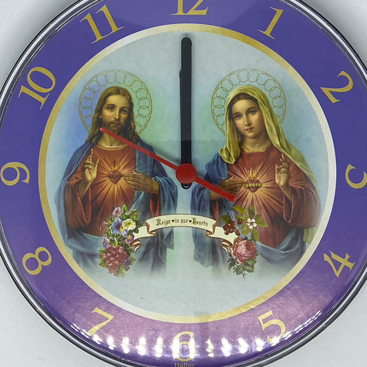 RELÓGIO ACRÍLICO SAGRADO CORAÇÃO DE JESUS E IMACULADO CORAÇÃO DE MARIA 23CM (1 UNIDADE)