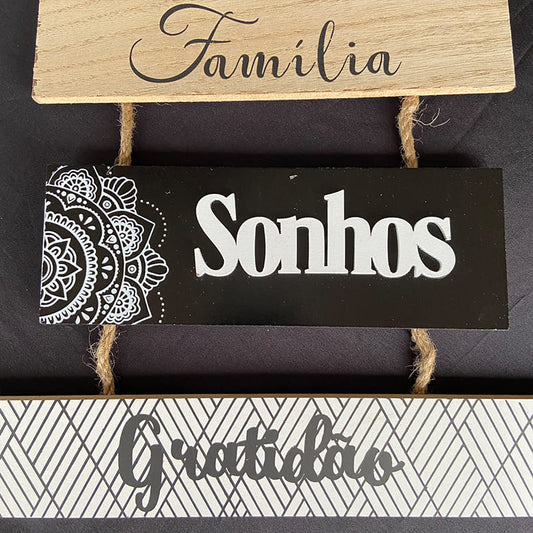 PLACA DECORATIVA FAMÍLIA SONHOS GRATIDÃO (1 UNIDADE)