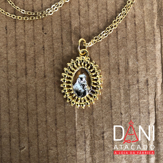 CORRENTE DOURADA OVAL NOSSA SENHORA DO CARMO VAZADO (1 UNIDADE)
