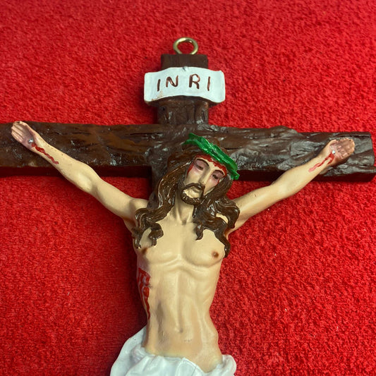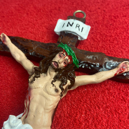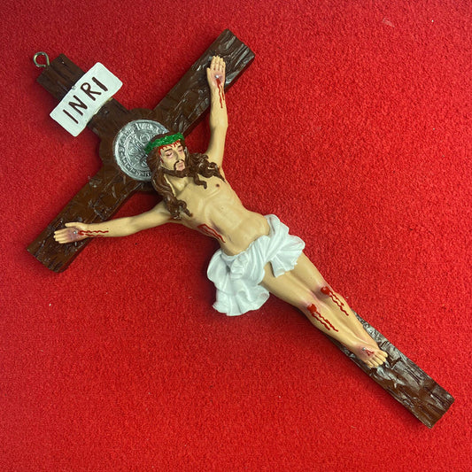 CRUCIFIXO DE RESINA NACIONAL PAREDE 27CM (1 UNIDADE)