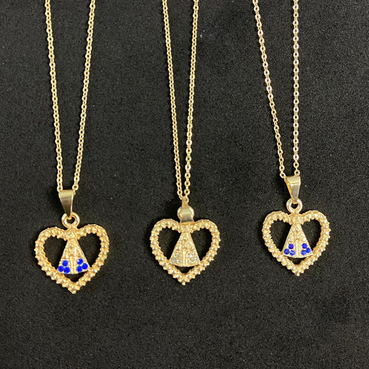 CORRENTE DOURADA CORAÇÃO VAZADO NOSSA SENHORA APARECIDA COM STRASS (3 UNIDADES)