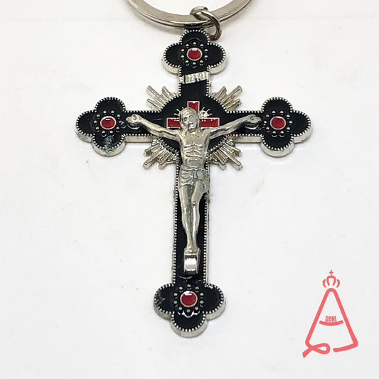 CHAVEIRO PRATA CRUCIFIXO VERMELHO (3 UNIDADES)