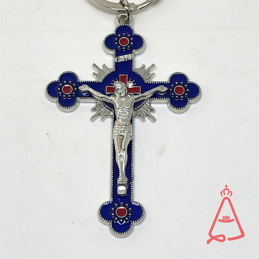 CHAVEIRO PRATA CRUCIFIXO AZUL (3 UNIDADES)