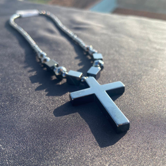 COLAR HEMATITA CRUZ (1 UNIDADE)