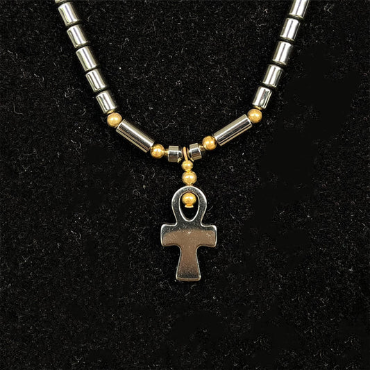 COLAR HEMATITA CRUZ ANSATA (1 UNIDADE)