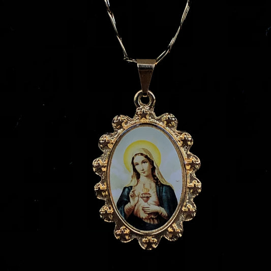 CORRENTE DOURADA MEDALHA RESINADA IMACULADO CORAÇÃO DE MARIA (1 UNIDADE)