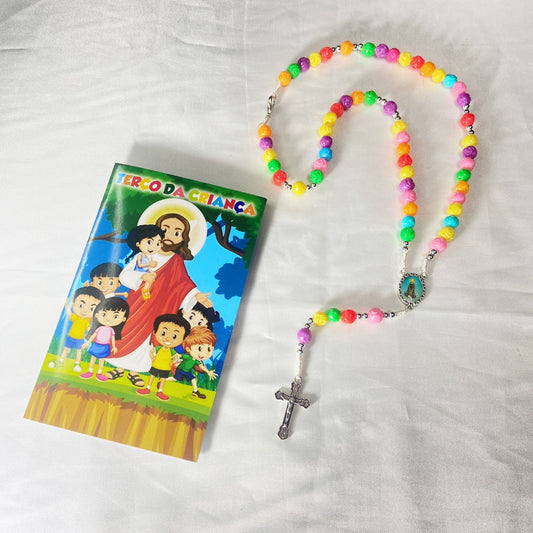 TERÇO DA CRIANÇA ROSAS CONTAS COLORIDAS 8MM(1 UNIDADE)