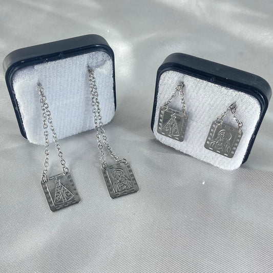 ESCAPULÁRIO INOX VAZADO G SAGRADO CORAÇÃO DE JESUS E NOSSA SENHORA APARECIDA (6 UNIDADES)