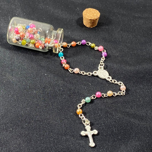 TERÇO NA GARRAFA NOSSA SENHORA APARECIDA COLORIDO 4MM (12 UNIDADES)