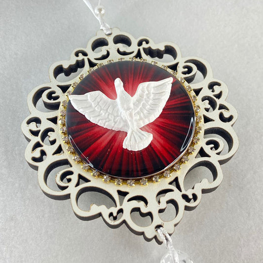MEDALHÃO DE PORTA RESINADO COM STRASS DIVINO ESPÍRITO SANTO EM RELEVO (1 UNIDADE)