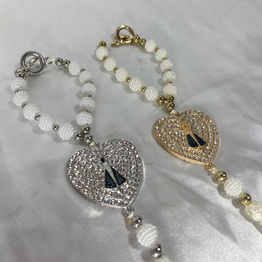 DEZENA PARA CARRO DOURADA E PRATEADA NOSSA SENHORA APARECIDA CORAÇÃO AMORA BRANCA 10MM (3 UNIDADES)