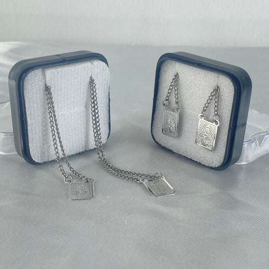 ESCAPULÁRIO DE INOX QUADRADO LASER DETALHADO M SAGRADO CORAÇÃO DE JESUS E NOSSA SENHORA DO CARMO (6 UNIDADES)