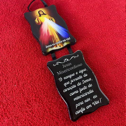 ADORNO DUPLO QUADRADO FITA JESUS MISERICORDIOSO (1 UNIDADE)