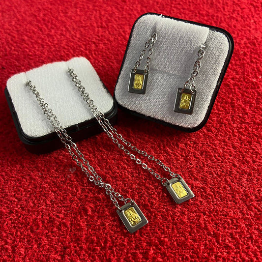 ESCAPULÁRIO DE INOX PLACA DOURADA P SAGRADO CORAÇÃO DE JESUS E NOSSA SENHORA DO CARMO (6 UNIDADES)