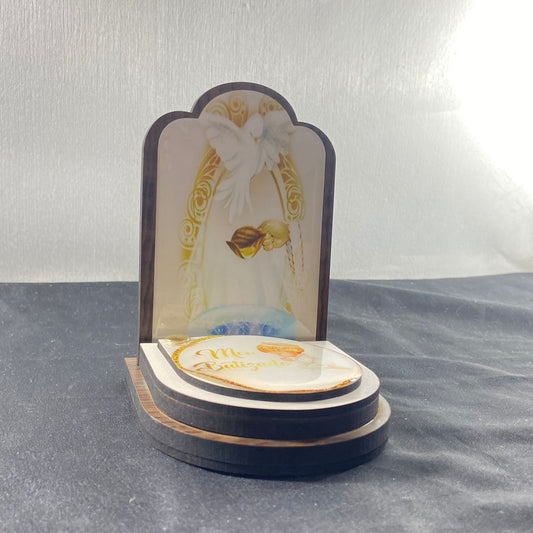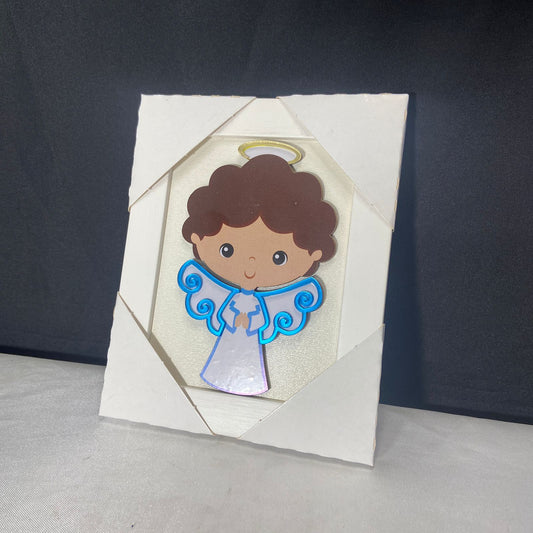 QUADRO MDF ANJO DA GUARDA AZUL INFANTIL COM ACRÍLICO 15,6CMX 12,6CM (1 UNIDADE)