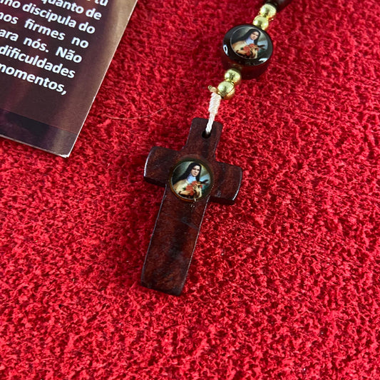 TERÇO DE MADEIRA SANTA TERESINHA 7 MEDALHAS (3 UNIDADES)