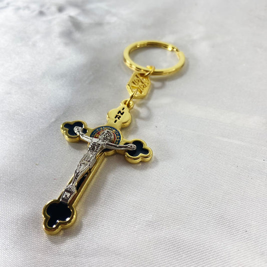 CHAVEIRO LUXO DOURADO CRUCIFIXO MEDALHA SÃO BENTO (6 UNIDADES)