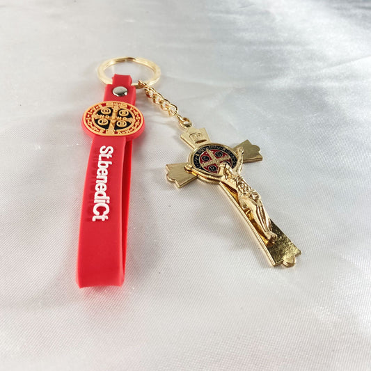 CHAVEIRO CRUZ SÃO BENTO COM FITA SILICONE VERMELHO (3 UNIDADES)